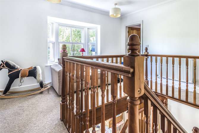 The stairs have hardwood railings and banisters and lead to a large gallery landing, creating plenty of open space: this leads to the four well proportioned double bedrooms and guest bathroom. The three bedrooms towards the rear of the house have views over the garden. The master and another bedroom have use of wardrobe space and the master benefits with an en-suite.