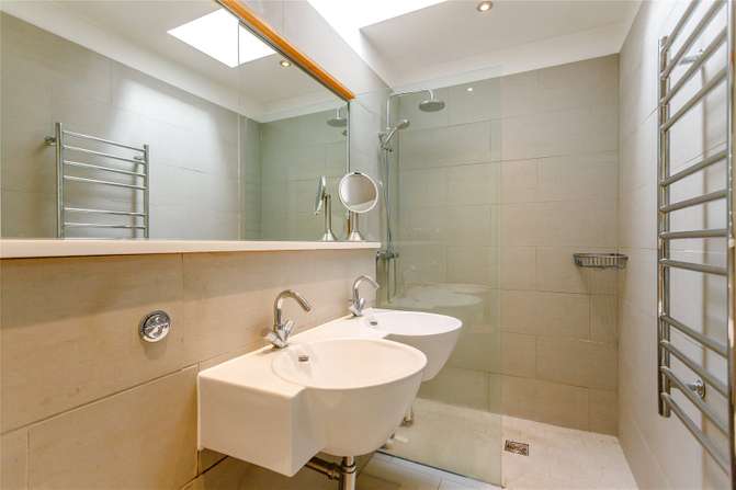 An inner landing area is set within the carefully created and well executed extension with a range of fitted wardrobes. Four bedrooms within the side/rear wing, with one enjoying a spacious en suite shower room with twin wash hand basins and one currently arranged as a studio/work room with wonderful light aspect. In addition there is a further family bathroom with